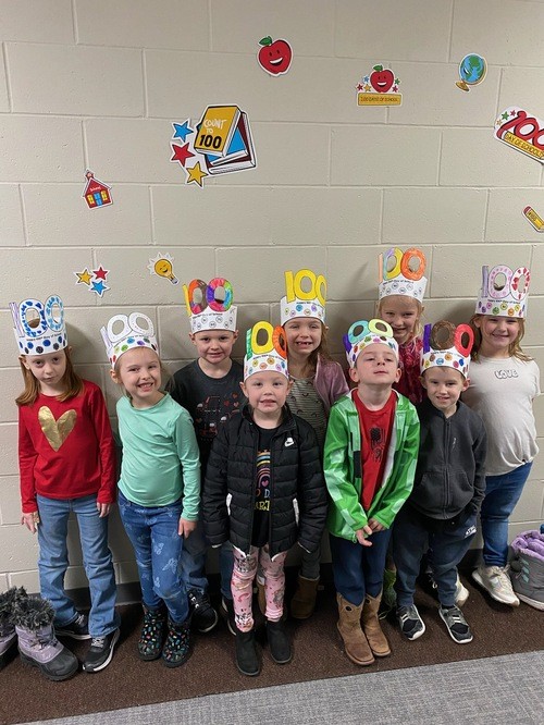 Kindergarten class celebrates the 100th day of school today. (2/14/2024)