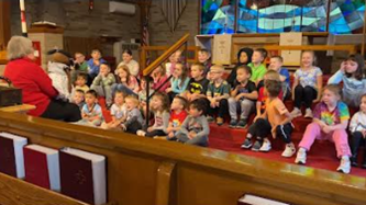 Teacher Deanna Hindenach teaching the children in chapel.